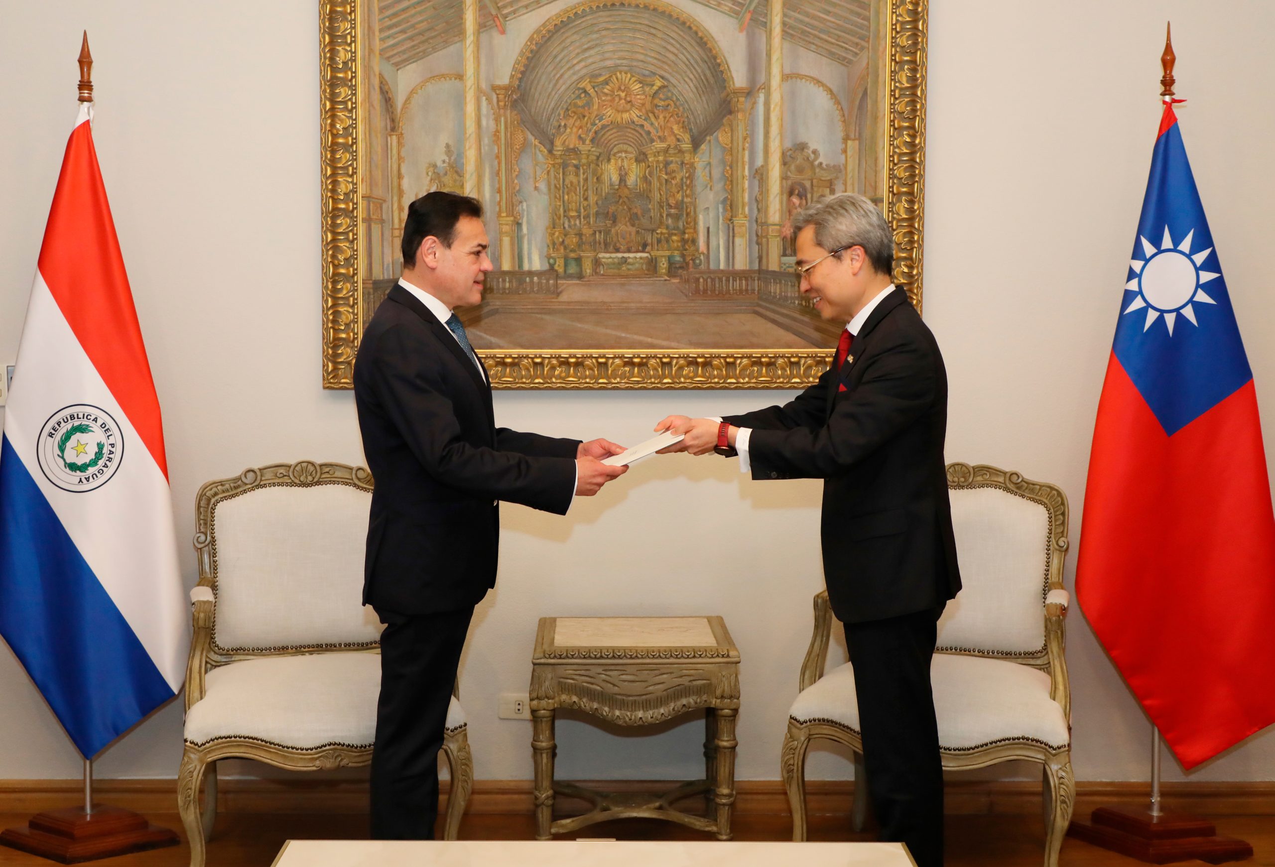 El presidente de la República, Santiago Peña, junto con el ministro de Relaciones Exteriores, Rubén Ramírez Lezcano, recibió las cartas credenciales del nuevo embajador de la República de China (Taiwán), Iván Y. J. Lee, y de la embajadora designada de la República de Cuba, Belkys Lay Rodríguez. La ceremonia se llevó a cabo esta tarde […]