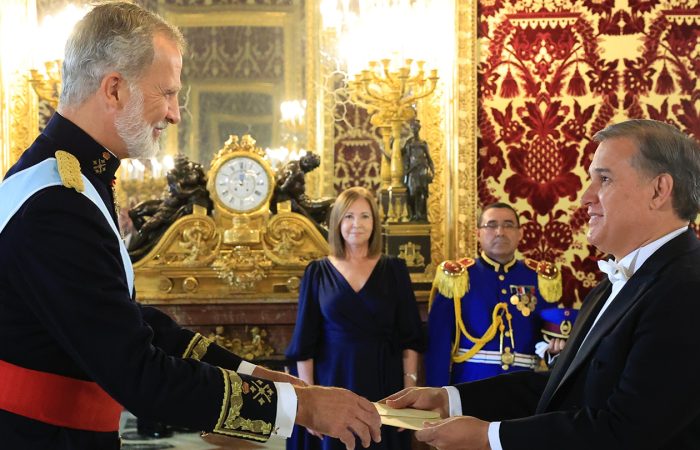 El embajador de Paraguay, Justo Pastor Apodaca Paredes, presentó hoy sus cartas credenciales al Rey de España, Felipe VI, en un acto desarrollado en el Palacio Real de Madrid.