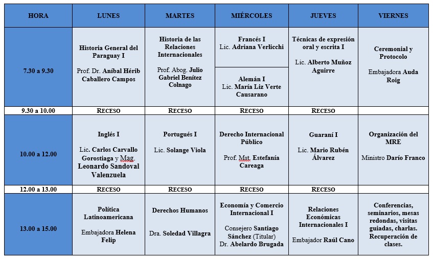 Carga horaria semanal: promedio 45 h/c.