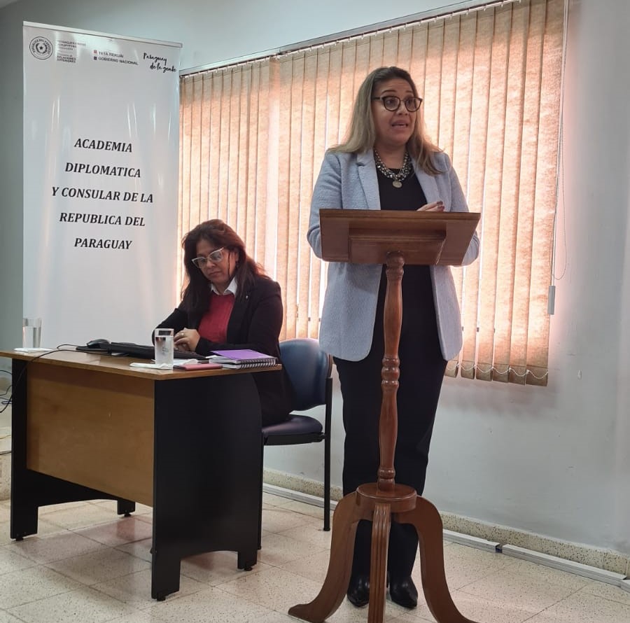 Seguidamente, se realizó una presentación de la Academia Diplomática y del Concurso Nacional, a cargo de la Coordinadora Académica, Consejera Estela Armoa. Igualmente, la ocasión fue propicia para presentar los datos estadísticos más relevantes de los concursos realizados hasta la fecha, presentación a cargo de la Primera Secretaria María Emilia Ayala, Jefa de Planificación y Programas.