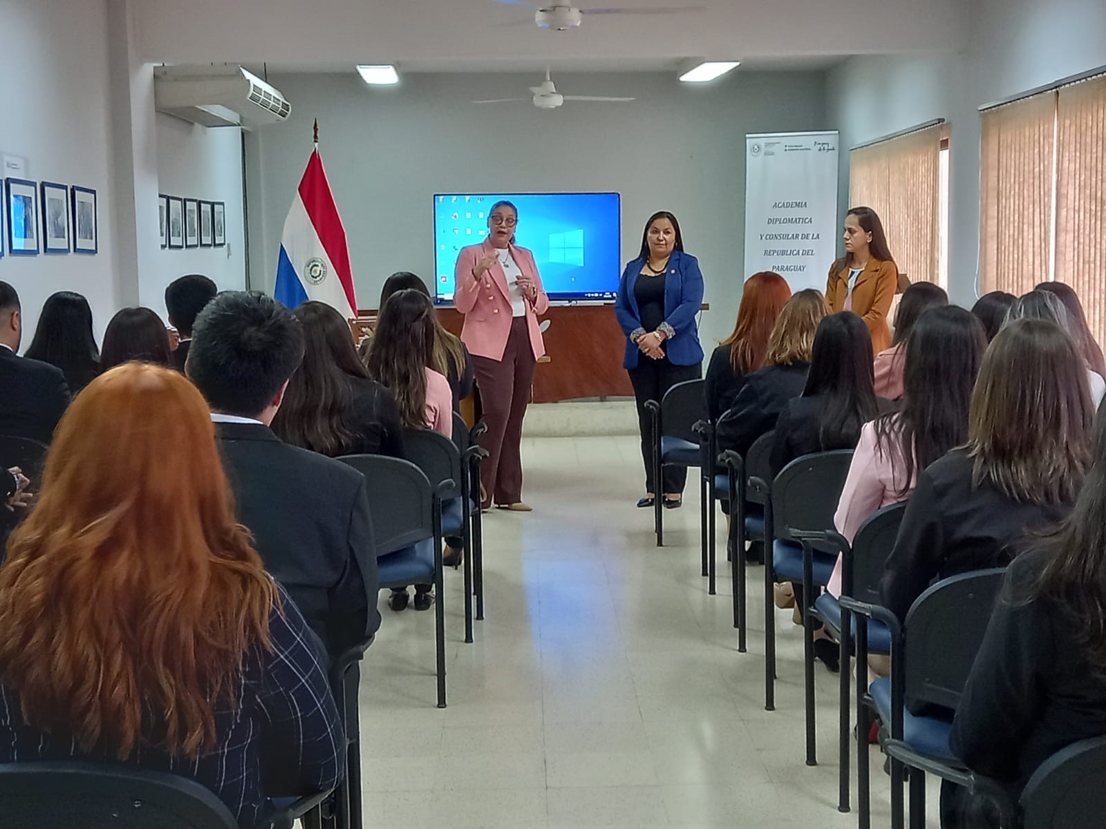 Coordinadora Académica, Consejera Estela Armoa, realizó una presentación de la Academia y del concurso nacional. Los alumnos se mostraron particularmente interesados en el concurso y aprovecharon la ocasión para plantear diversas dudas que tenían con relación al mismo. El acto continuó con una presentación de las estadísticas del concurso, a cargo de la Primera Secretaria María Emilia Ayala, Jefa de Planificación y Programas.