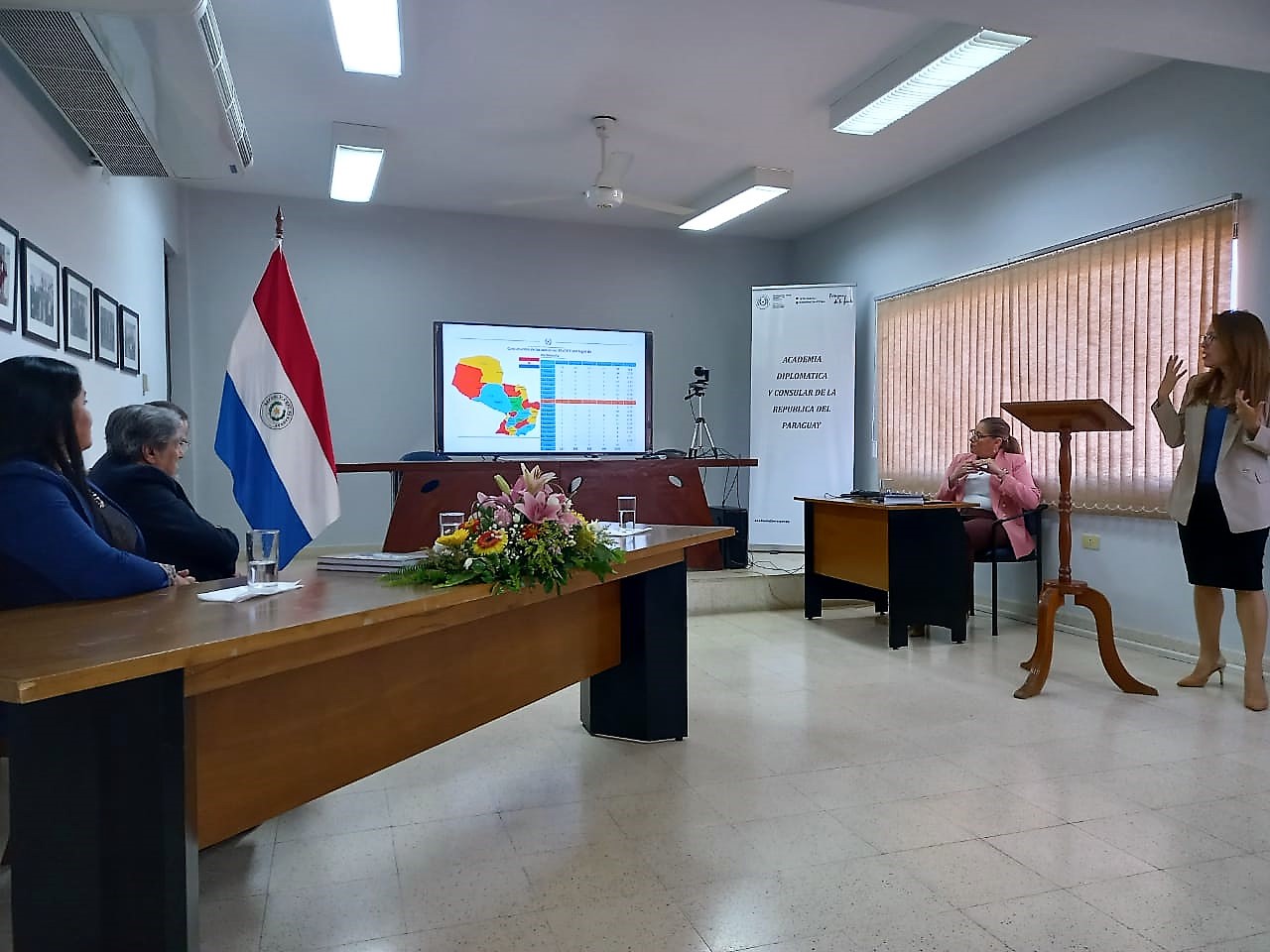 Los mismos estuvieron acompañados por el Dr. Juan de Cruz Brítez, profesor de dicha Universidad, y fueron recibidos por el Director General de la Academia Diplomática y Consular, Embajador Juan Andrés Cardozo.