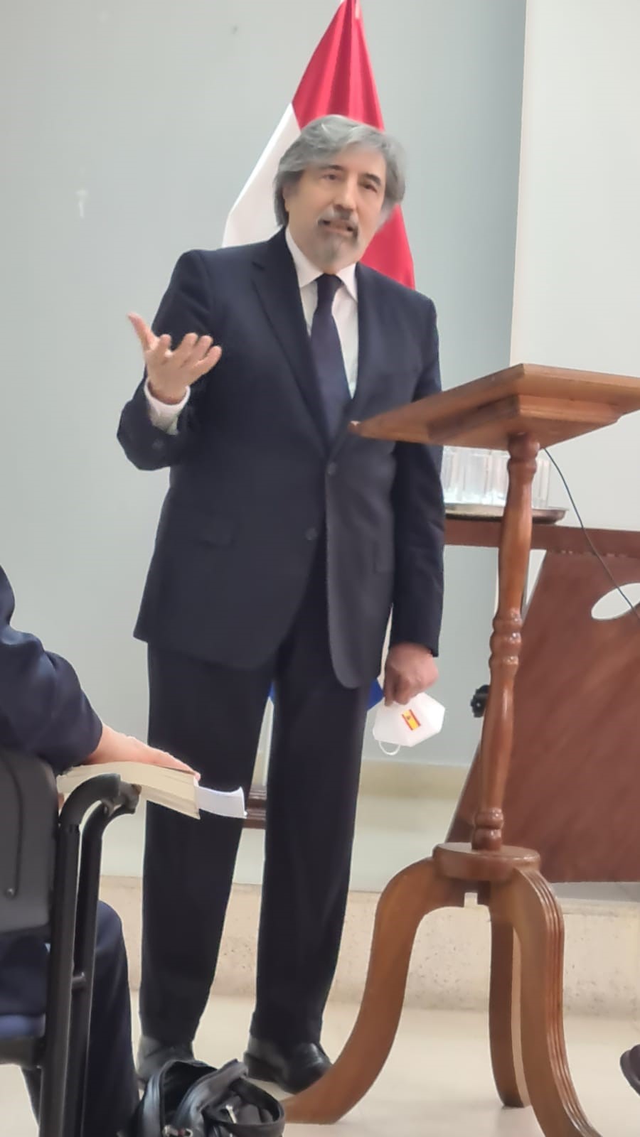El Director General de la Academia, Embajador Juan Andrés Cardozo, dio la bienvenida a los conferencistas invitados y a los presentes y destacó la importancia de que los diplomáticos paraguayos sepan que el Paraguay no es un país bilingüe, sino plurilingüe. Destacó también la relevancia del día internacional de la lengua materna, indicando que la muerte de la lengua es la muerte de la cultura, ya que “el ser vive en la palabra, pues la palabra expresa el saber hacer, el saber vivir, pero, sobre todo, el saber pensar”. Por ello, instó a los jóvenes diplomáticos paraguayos a trabajar en el proceso de descolonización, a partir de la diversidad cultural de nuestro país, para que el Paraguay sea realmente una nación soberana.