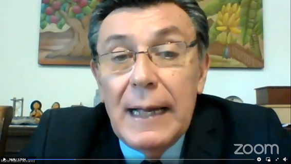 El expositor, Profesor Mario Rubén Álvarez, docente de guaraní de esta casa de estudios, hizo un repaso histórico del desarrollo del guaraní paraguayo, su permanencia durante la colonización y conquista, el periodo independiente y la época contemporánea. Destacó la importancia de este idioma en la configuración de la identidad nacional y su conjunción con el español, al cual ha aportado más de 150 vocablos, que han sido incorporados al diccionario de la Real Academia de la Lengua Española. Entre ellos, destacó palabras tales como acutí, carayá, caracú, pororó, ingá entre otros.