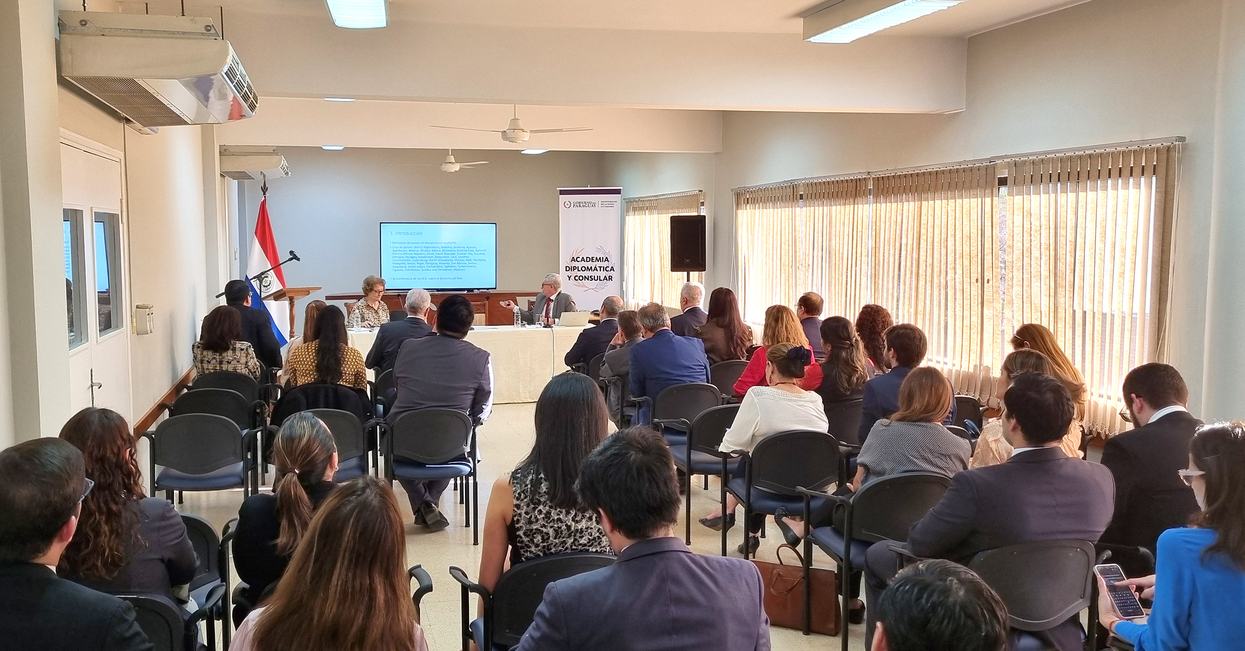 La apertura del evento y la presentación de los magistrados estuvo a cargo del embajador Ricardo Scavone, director general de la referida casa de estudios. El encuentro contó con la participación del embajador Víctor Verdún, viceministro de Relaciones Exteriores, del ex canciller nacional, José Félix Fernández Estigarribia, del embajador de Chile Guillermo Bittelman, de diplomáticos y estudiantes de la Academia, así como de funcionarios del Ministerio de Relaciones Exteriores en general.