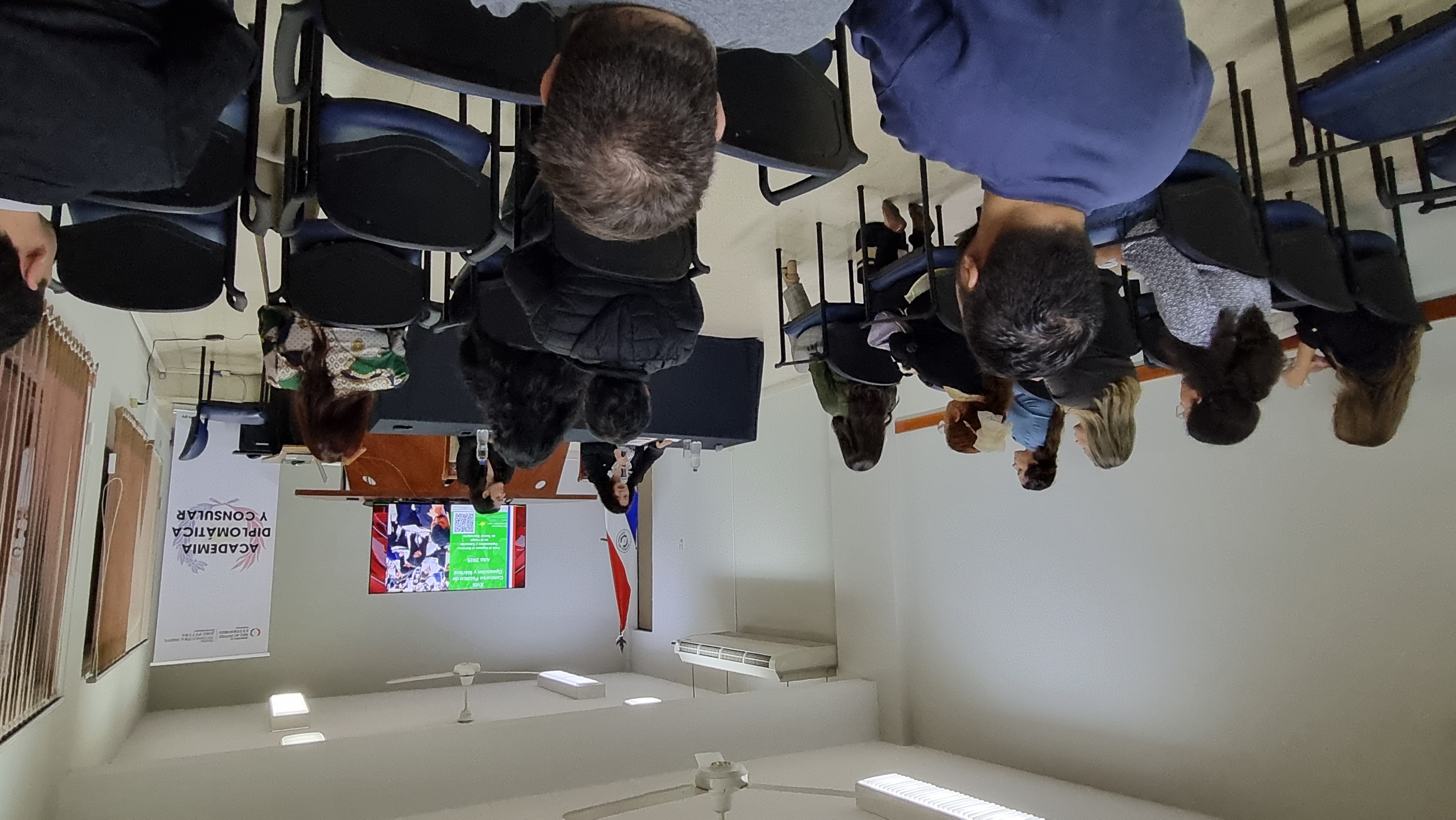 La apertura del encuentro estuvo a cargo de la Embajadora Liz Haydee Coronel Correa, Directora General de la mencionada casa de estudios, quien expresó su satisfacción por el interés en la carrera diplomática, considerando que son profesionales que se especializaron en el exterior y podrían contribuir a la inserción internacional del Paraguay en el mundo. Explicó, además, las virtudes de la carrera, de la que señaló que, a pesar de las etapas desafiantes es una brillante oportunidad para servir a la Nación.