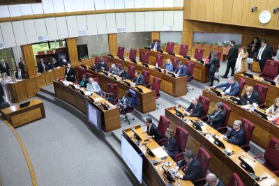 El ministro de Relaciones Exteriores, Rubén Ramírez Lezcano y demás consejeros de la Entidad Binacional Itaipú, en reunión con la mesa directiva del Senado, detallaron los alcances del acuerdo concretado entre Paraguay y Brasil sobre la tarifa de Itaipu.