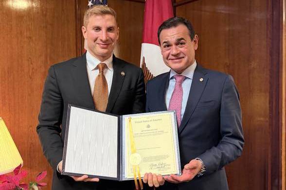 El ministro de Relaciones Exteriores, Rubén Ramírez Lezcano, se reunió con el subsecretario de Asuntos Económicos del Departamento de Estado de los Estados Unidos, Jacob Helberg, ocasión en la que recibió el acta oficial que acredita al Paraguay como miembro del Board of Peace (Junta de la Paz).