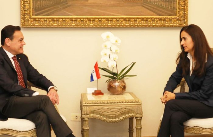 El canciller nacional, Rubén Ramírez Lezcano, recibió esta mañana, en el Palacio Benigno López de Ministerio de Relaciones Exteriores, a la secretaria del Tribunal Permanente de Revisión del Mercosur, Natasha Suñé.
