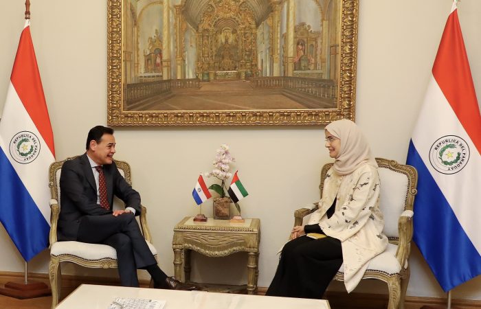 El canciller nacional, Rubén Ramírez Lezcano, recibió hoy en audiencia a la embajadora de los Emiratos Árabes Unidos (EAU) en Paraguay, Al-Saghira Wabran Hamad Mubarak Al-Ahbabi, con quien repasó la agenda bilateral y de cooperación.