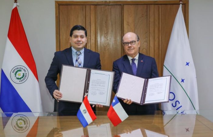 El embajador de la República de Chile, Manuel Francisco Gormaz Lira, hizo entrega de los instrumentos de ratificación y firmó el acta de depósito junto con el director general de Política Bilateral y encargado de despacho del Viceministerio de Relaciones Exteriores de la República del Paraguay, Raúl Martínez.