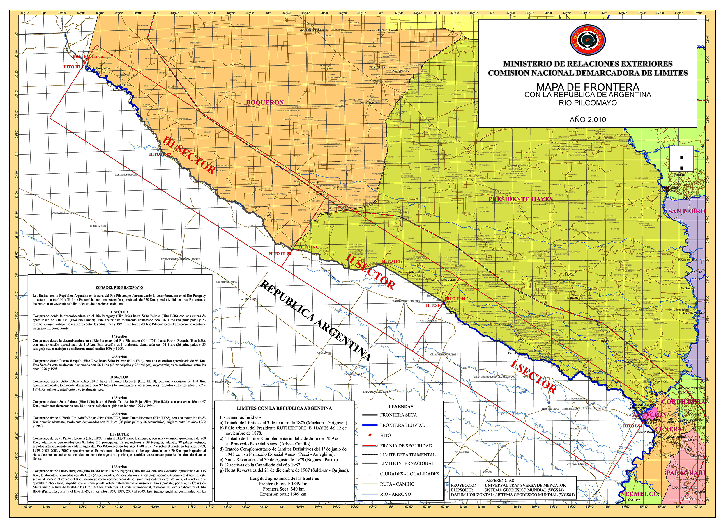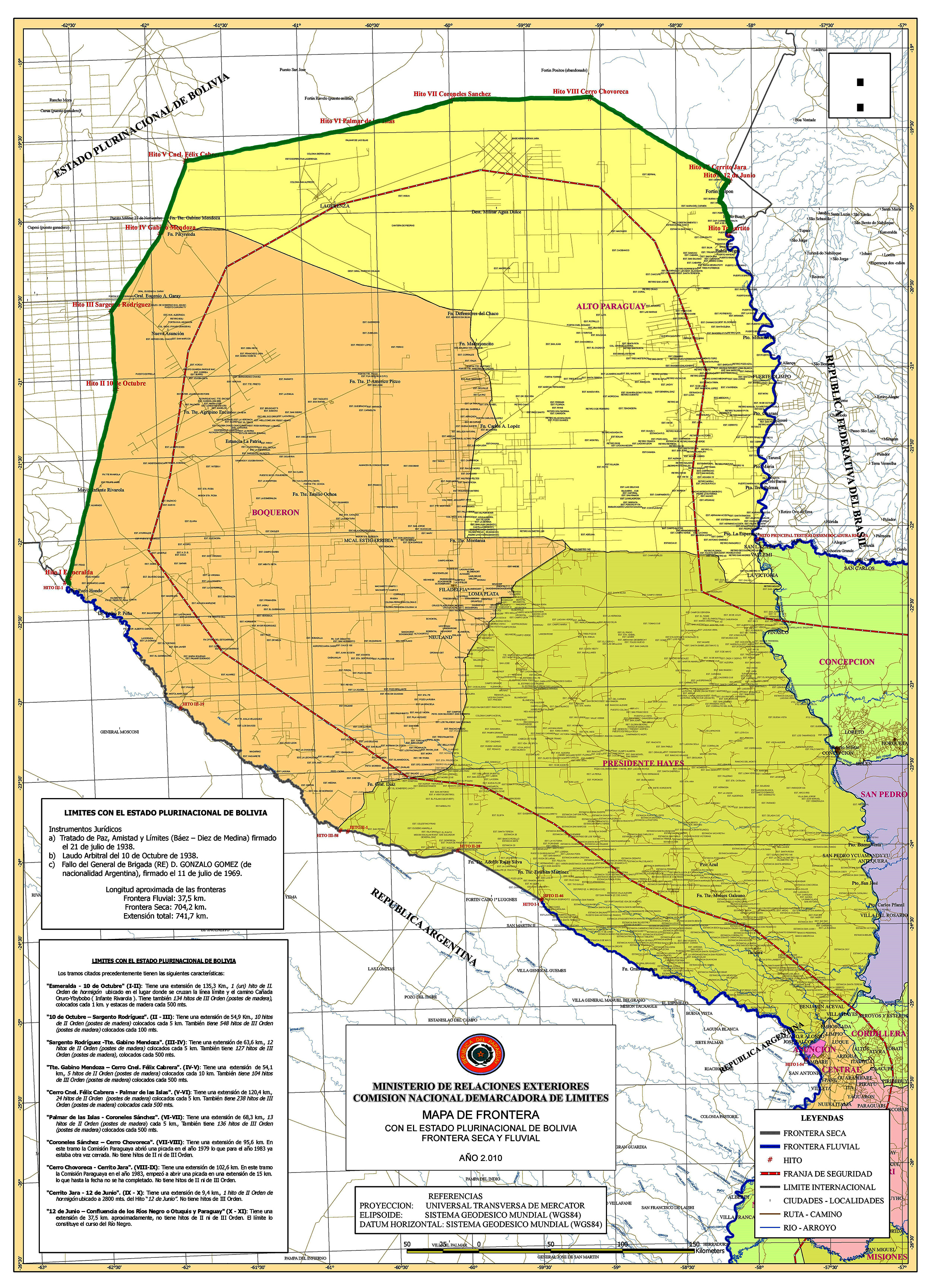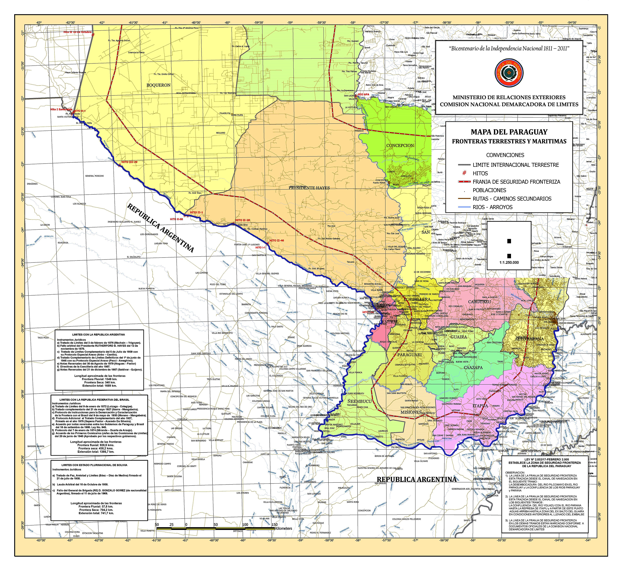 Mapa del Paraguay - Fronteras terrestres y fluviales