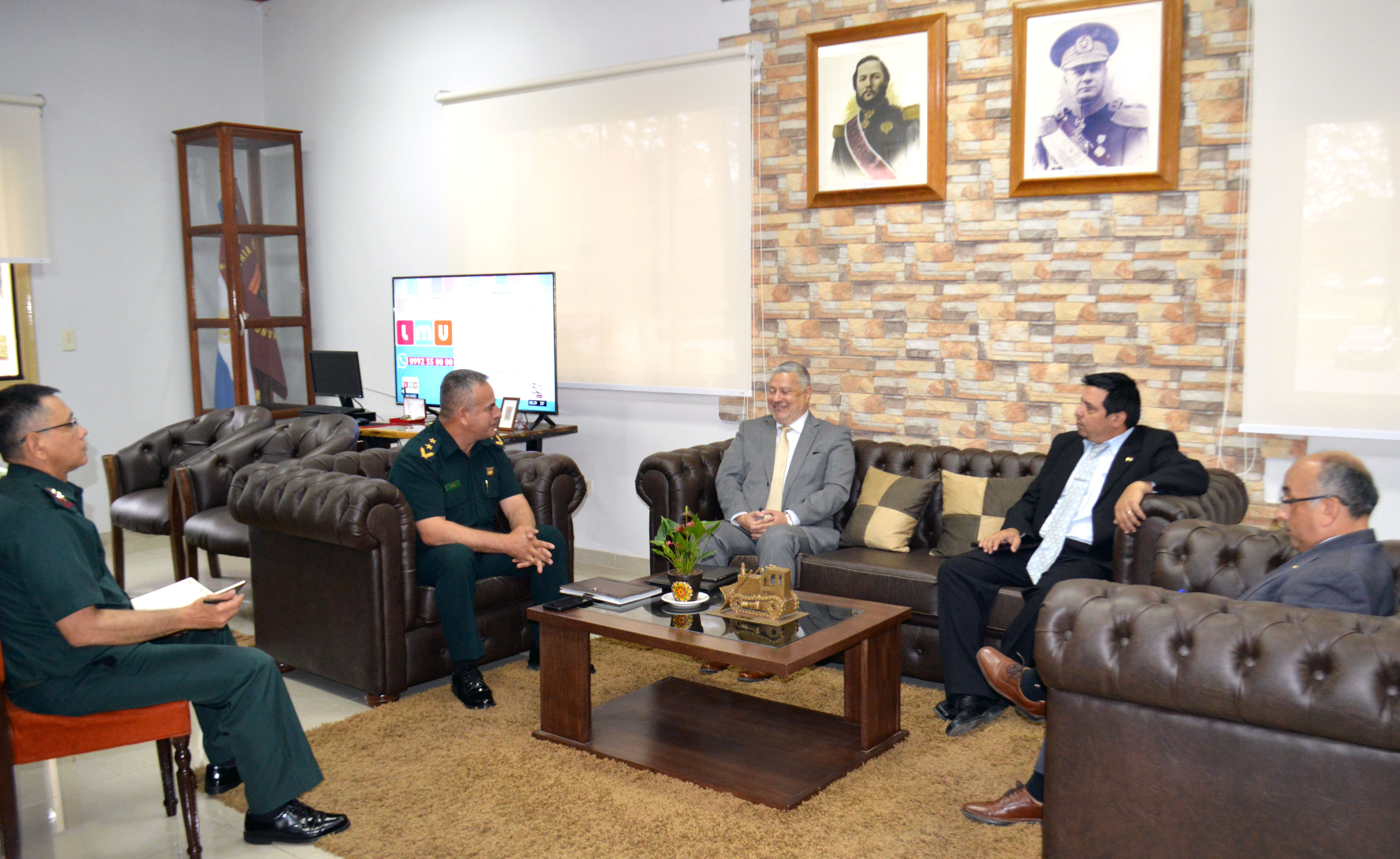 Con el fin de compartir información e intercambiar pareceres y opiniones sobre el importante rol y las diversas acciones que viene realizando la CNDL y afianzar el excelente relacionamiento con los ministerios y organismos militares, el titular de la Comisión Nacional acompañado del Delegado Demarcador Ing. Javier Cabrera y del Coordinador de Relaciones Interinstitucionales y de Comunicación Social, abogado Elvio Venega Amarilla, visitó a los ministros de Defensa, Gral (SR) Bernardino Soto Estigarribia, de Obras Públicas y Comunicaciones, Ing. Rodolfo Segovia Colmán, al comandante del Comando de Ingeniería del Ejército (COMINGE) Gral. Brig. Erico Javier Oviedo Cáceres y al Cnel. Fermín Lezcano Davalos, responsable de la Dirección del Servicio Geográfico Militar (DISERGEMIL).