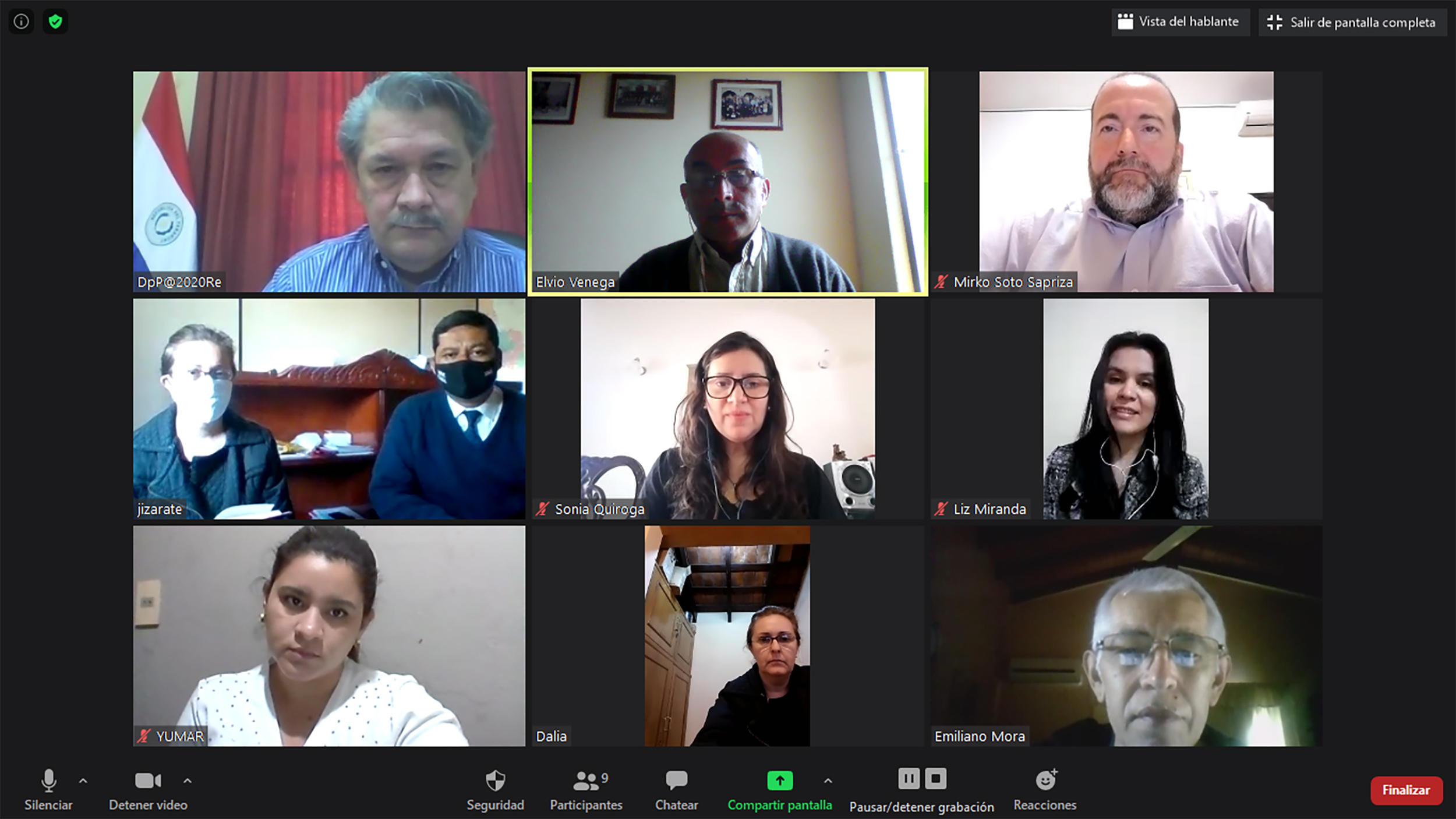 El presidente de la Comisión Nacional Demarcadora de Límites (CNDL), embajador Víctor Hugo Peña Bareiro, mantuvo en la fecha una reunión virtual con funcionarios de la institución, tanto con quienes realizan tareas presenciales –bajo riguroso respeto al protocolo sanitario- como aquellos en modalidad de teletrabajo a causa de la actual pandemia del Covid-19, a fin de avanzar en el proceso de ajuste de las tareas de investigación, recopilación y redacción de todo el material histórico existente en los archivos de la citada Comisión.