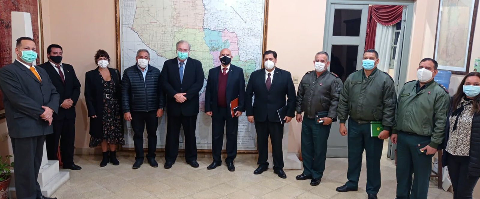 Además del ministro Insfran, participaron de la reunión el primer secretario Orlando Verdun, la Lic. Liz Miranda y el Abog. Guillermo Pereira por la CNDL; por el Ministerio de Obras Públicas y Comunicaciones, el Director de Caminos Vecinales, Ingeniero Rodolfo Segovia y la Ingeniera Sheila Insfrán, la Coordinadora de Relaciones Internacionales, Lic. Gilda Arrellaga; por el Ministerio de Defensa Nacional, el general Brig. (R) Sergio Benítez, el coronel Jorge Sosa y el Lic. Luis Zarate Pastor, y por las Fuerzas Militares-COMINGE, el Cnel. DCEM Erico Oviedo y Tte. coronel DCEM Félix Martínez, respectivamente.