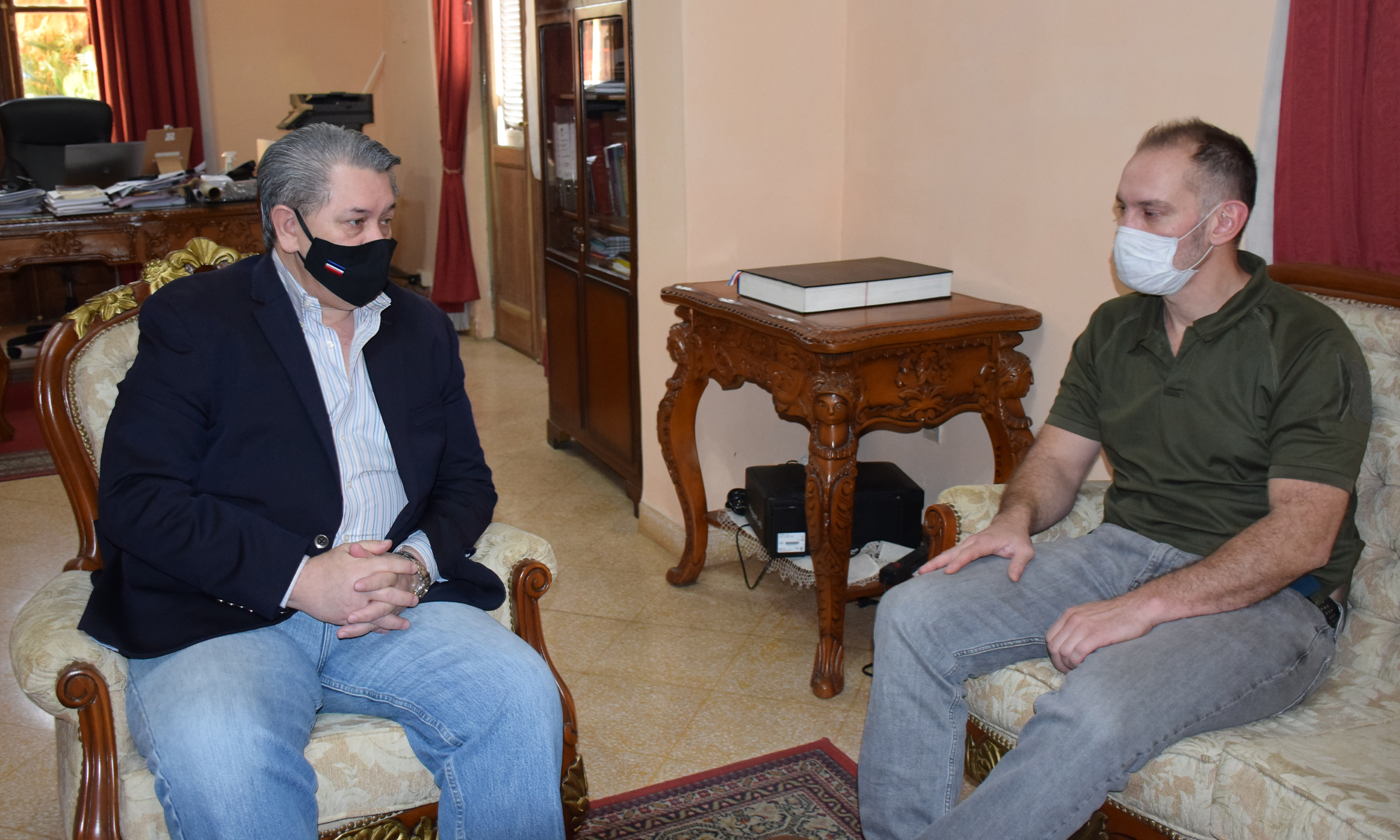 El presidente de la Comisión Nacional Demarcadora de Límites, embajador Victor Hugo Peña Bareiro recibió en la fecha al señor Roger Daniel Careaga Vasconsellos, presidente de la Asociación de la Movida del Centro Histórico de Asunción (AMCHA), uno de los organizadores del evento denominado “Hito Challenge Paraguay –Bolivia”, que se realizará del 8 al 16 de agosto de 2020.