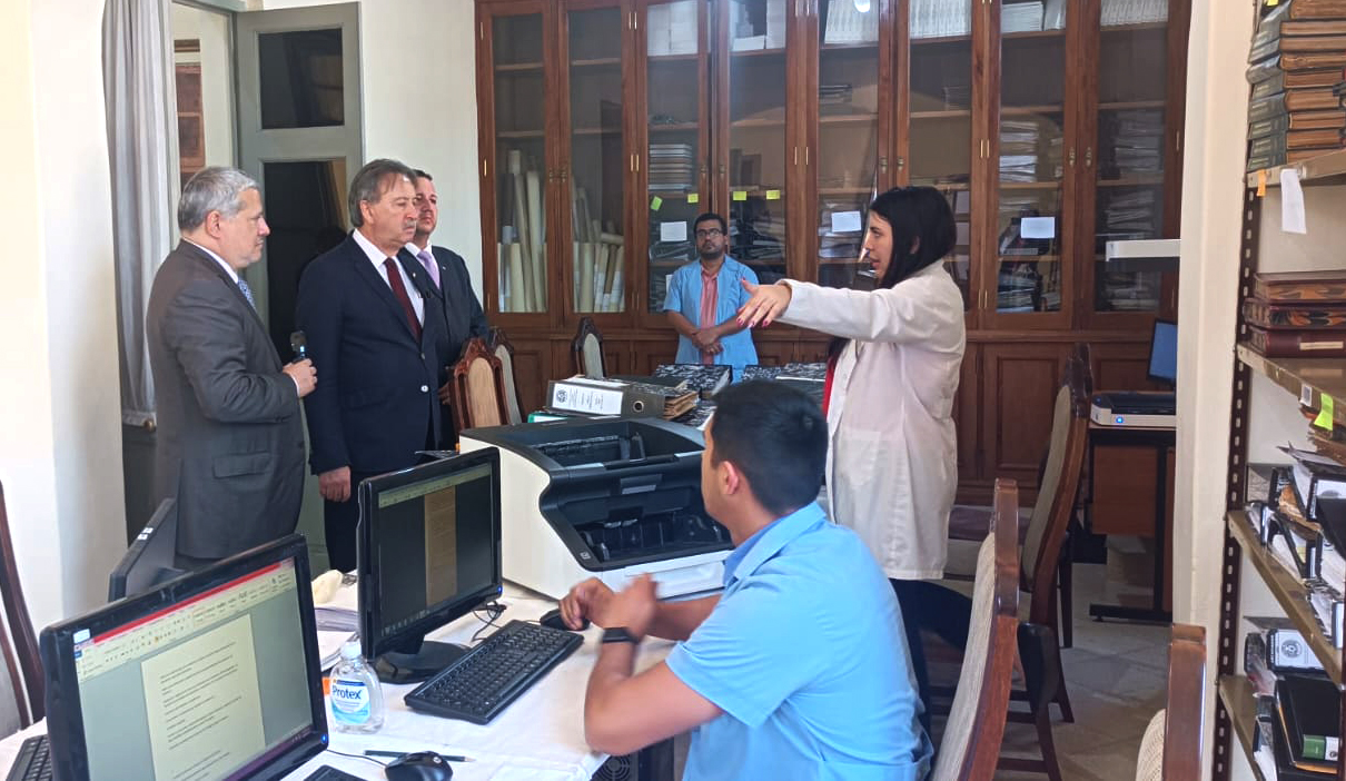 Igualmente, la ocasión fue propicia para conocer de cerca el avance de la implementación del proyecto de “Digitalización, preservación y puesta en valor del acervo documental Nacional de Instituciones del Estado Paraguayo”, financiado por la Itaipú Binacional e implementado con apoyo de la Oficina de las Naciones Unidas de Servicios para Proyectos (UNOPS), que consiste fundamentalmente en este caso de la digitalización, preservación y puesta en valor del acervo documental de la Comisión Nacional Demarcadora de Límites (CNDL), consistente en actas, tratados, cartas geográficas y mapas, entre otros, y que testimonian la larga formación y consolidación de los límites internacionales del Paraguay.