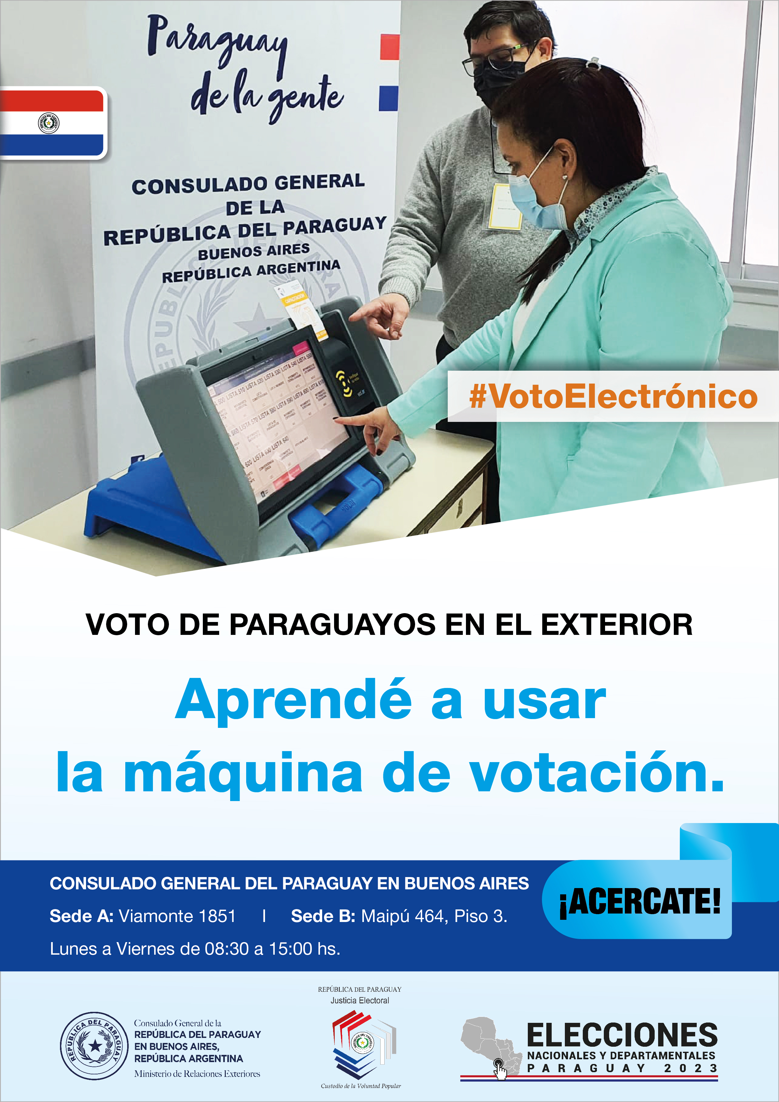 Ver Más¡Acercate al Consulado General y aprendé a usar la máquina de votación! En las Internas Partidarias del 18 de diciembre de 2022 y en las Elecciones Nacionales del Paraguay del 30 de abril de 2023, regirá el Voto Electrónico, mediante la utilización de la máquina de votación.