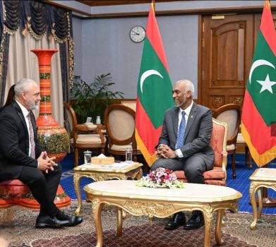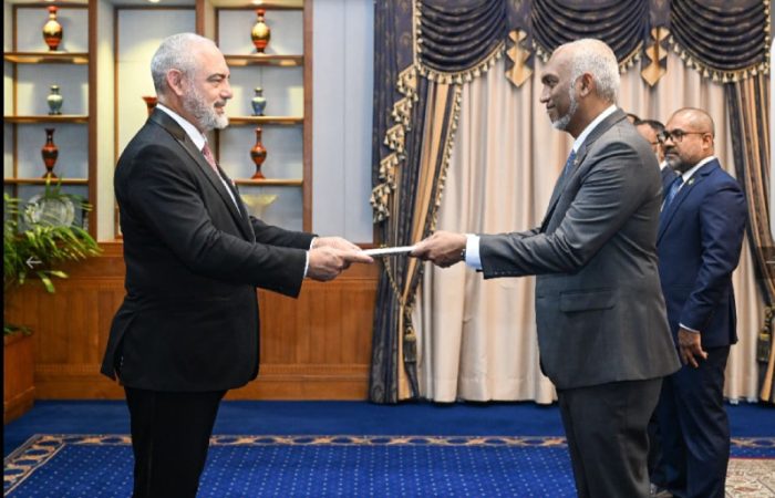 El embajador Fleming Raúl Duarte Ramos presentó sus cartas credenciales al presidente de la República de Maldivas, Mohamed Muizzu, en el palacio Mulee Aage, con la presencia del ministro de Relaciones Exteriores de Maldivas, Abdulla Khaleel, y altos funcionarios del gobierno local.
