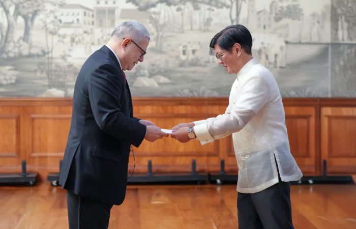 El presidente Marcos expresó su voluntad de trabajar para que la visita oficial se concrete y brindó una cálida bienvenida al representante paraguayo y le deseó una labor fructífera orientada a identificar nuevas áreas de cooperación. Por su parte, el embajador reafirmó su compromiso de colaborar estrechamente con el Departamento de Asuntos Exteriores de Filipinas para impulsar iniciativas que profundicen la cooperación bilateral y fortalezcan una asociación dinámica y mutuamente beneficiosa.