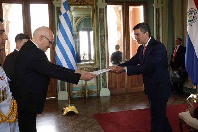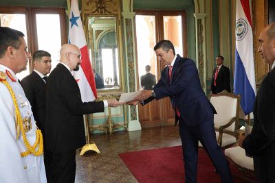 El presidente de la República, Santiago Peña, junto con el viceministro de Relaciones Exteriores, Víctor Verdún, recibió en la fecha, las cartas credenciales de los embajadores concurrentes de Países Bajos, Mauritz Wilheimus Verheijden; de Chipre, Stylianos Georgiades; y de Grecia, Stavros Spyridakis. Asimismo, del embajador de Panamá, Humberto Jirón Soto Espino.