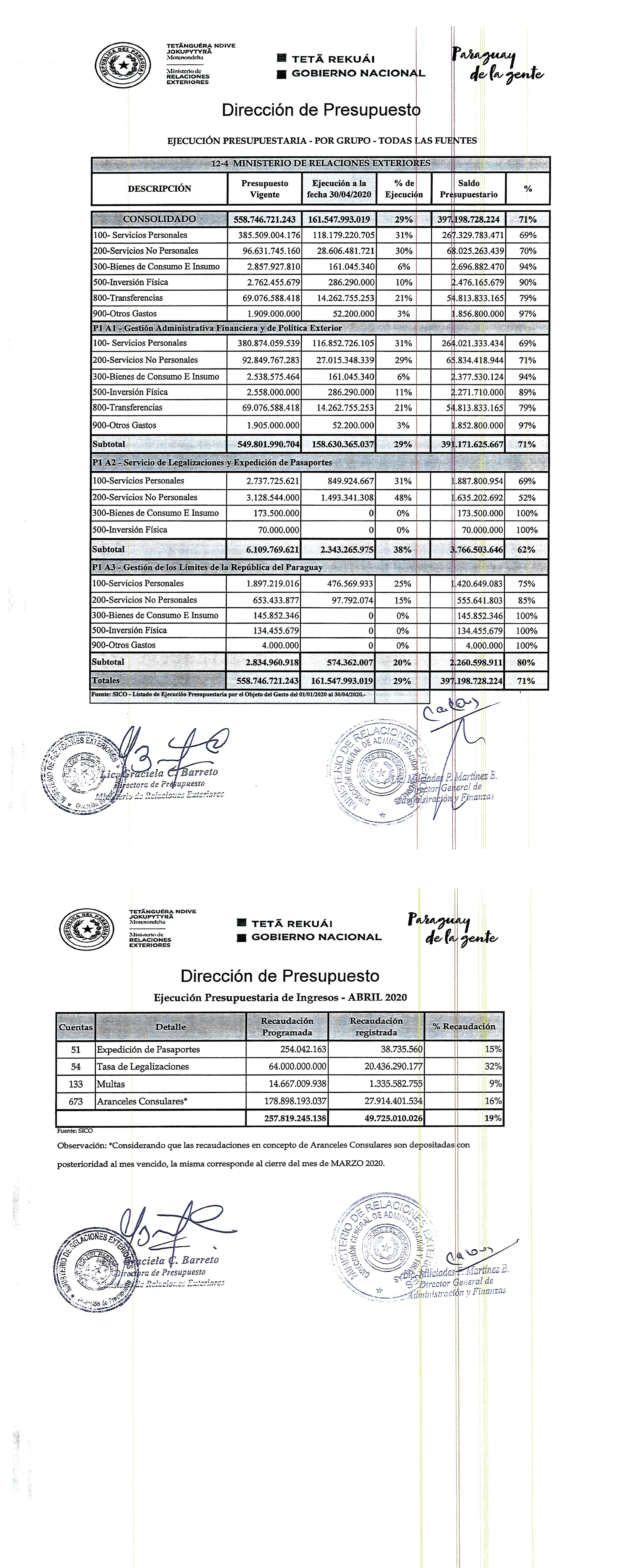 e – Ejecución Presupuestaria a Abril 2018