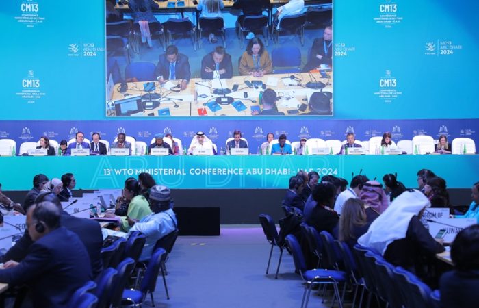 La Conferencia Ministerial de la OMC se desarrolló desde 26 de febrero al 1 de marzo, en Abu Dabi, Emiratos Árabes Unidos, con el objetivo de negociar las reglas multilaterales del comercio internacional; principalmente sobre agricultura, subvenciones a la pesca, reforma del sistema de solución de diferencias, desarrollo y comercio electrónico.