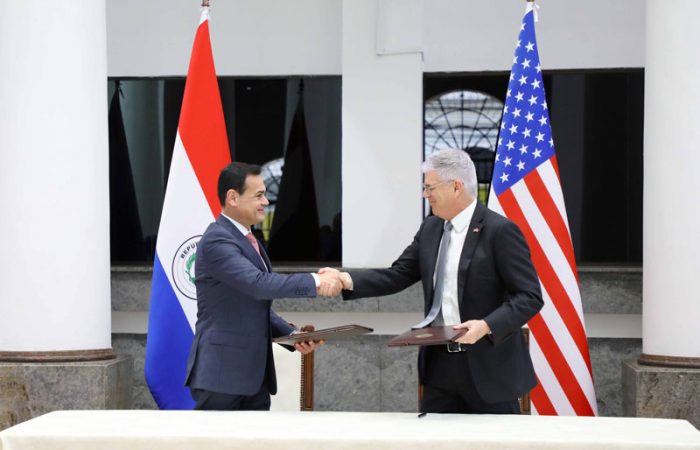 El ministro de Relaciones Exteriores, Rubén Ramírez Lezcano, y el embajador de los Estados Unidos de América en el Paraguay, Marc Ostfield, suscribieron la modificación del Memorándum de Entendimiento con la cual se extiende, hasta el 2025, la implementación del proyecto Tecnología y Sistemas Agrícolas para Facilitar el Comercio en el Paraguay (T-FAST).