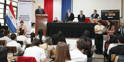 La evaluación se desarrolló en el Aula Magna de la Facultad de Derecho y Ciencias Sociales de la Universidad Nacional de Asunción (UNA), y la apertura de la prueba estuvo a cargo del director general de la Academia Diplomática y Consular, Ricardo Scavone.